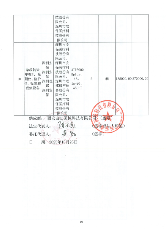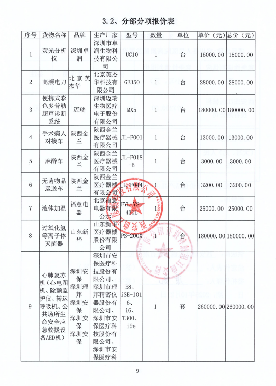 | 1 | 其他医疗设备 | 便携式彩色多普勒超声诊断仪、过痒化氢低温等离子灭菌器、心肺复苏机、急救转运呼吸机、除颤仪等医疗设备 | 详见附件 | 详见附件 | 1.00(批) | 975,700.00 | 975,700.00 |