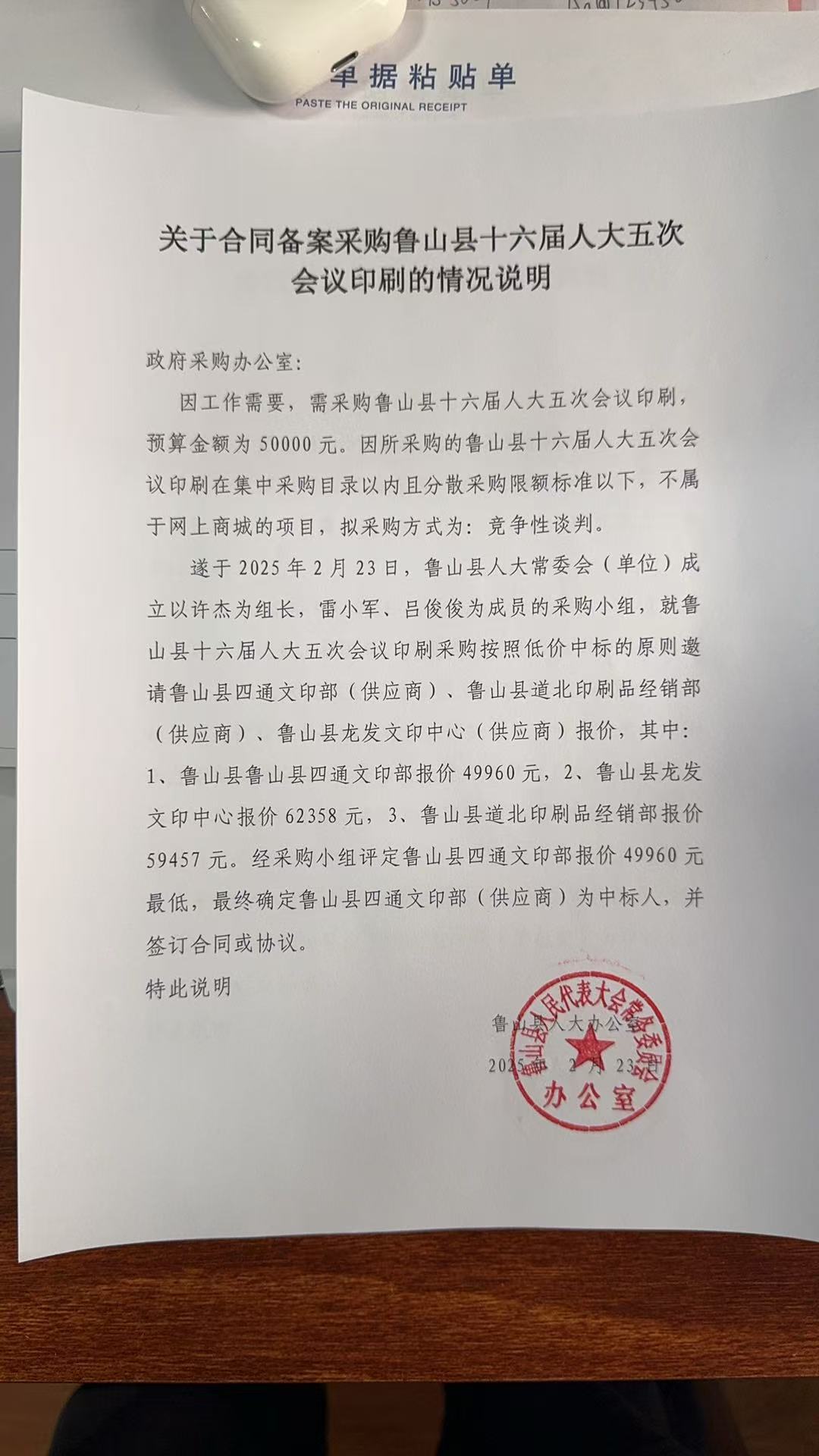鲁山县十六届人大五次会议印刷-合同公告