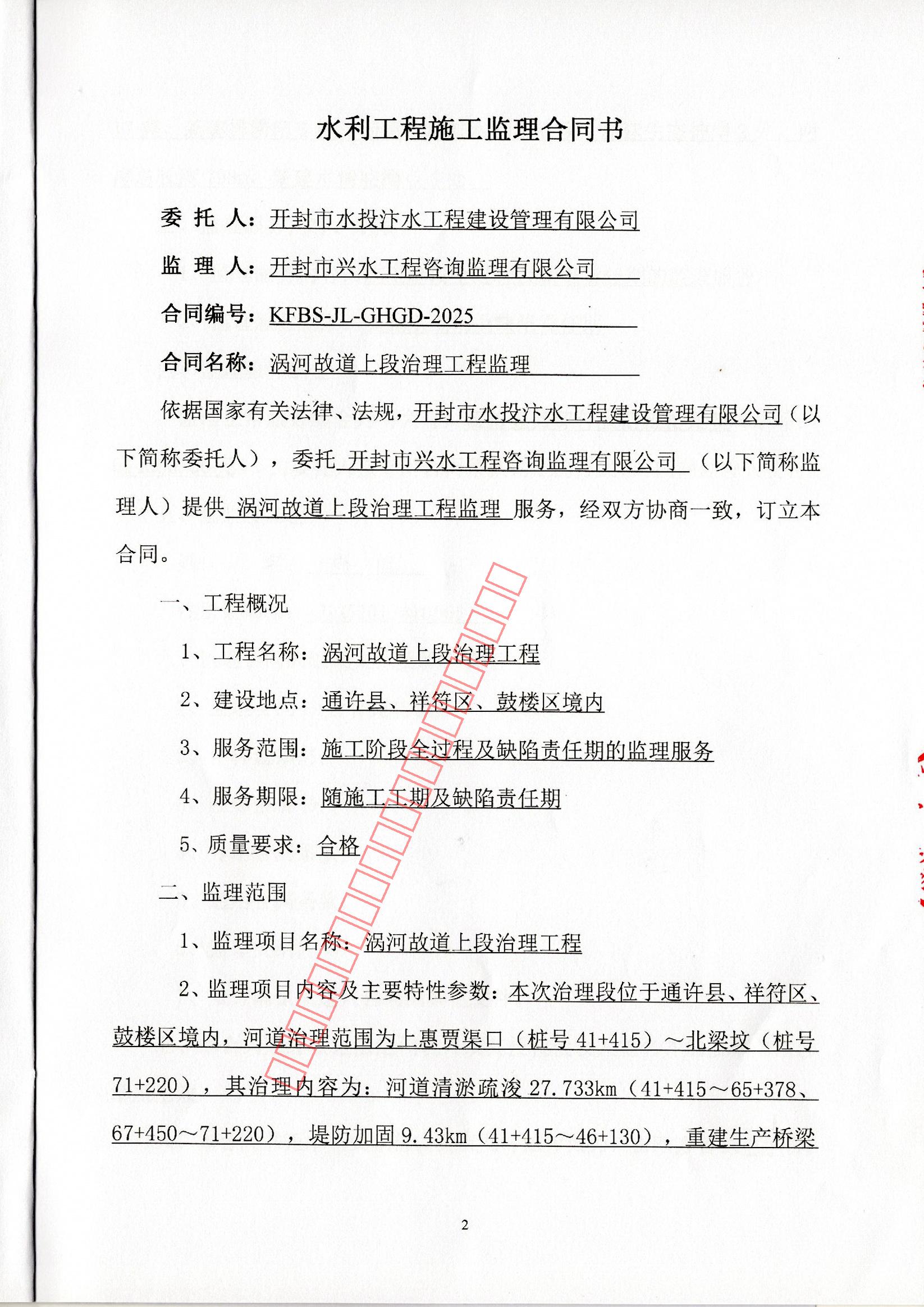 | 分包名称: | 涡河故道上段治理工程监理 | 合同名称: | 涡河故道上段治理工程监理 |
