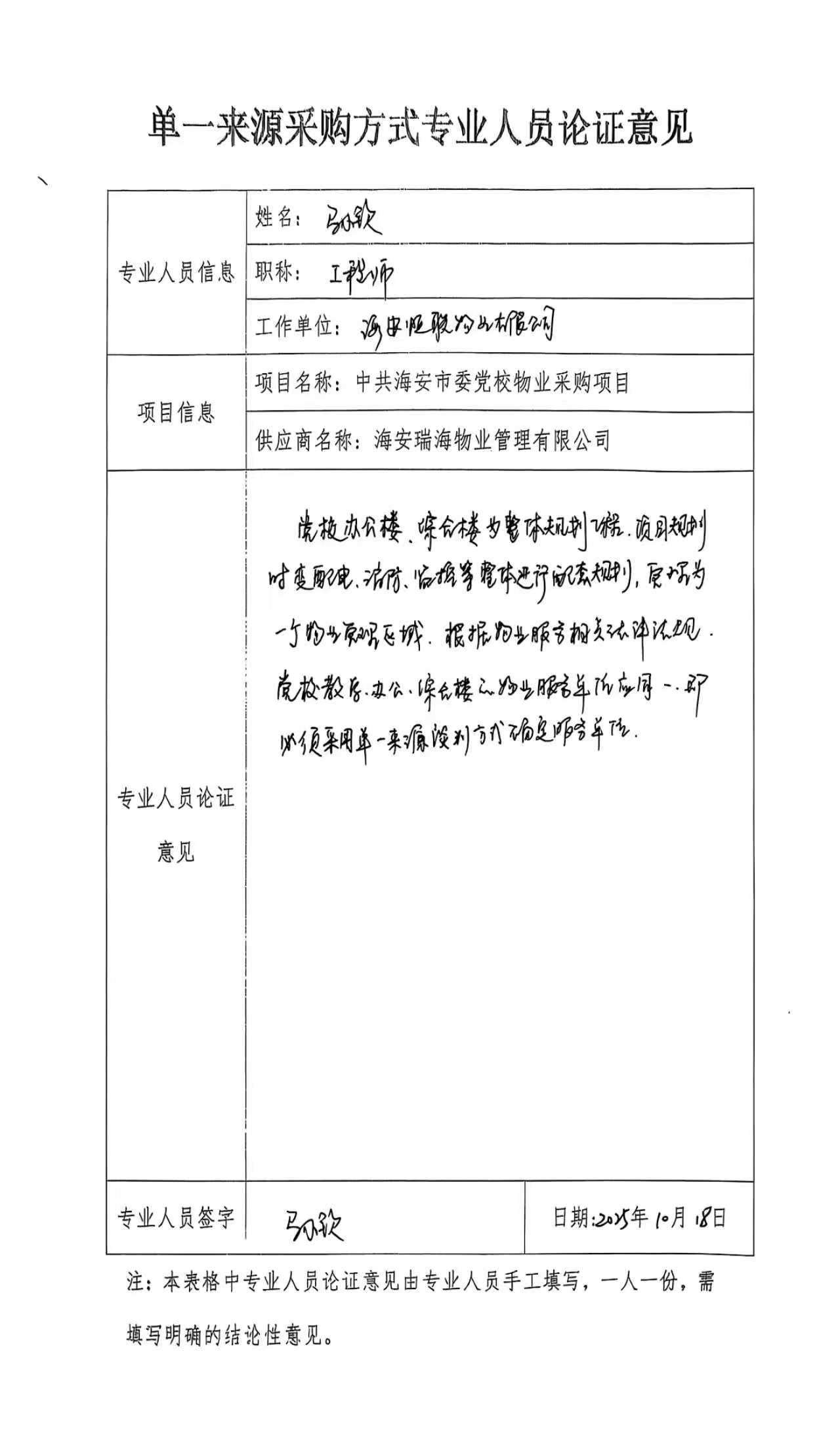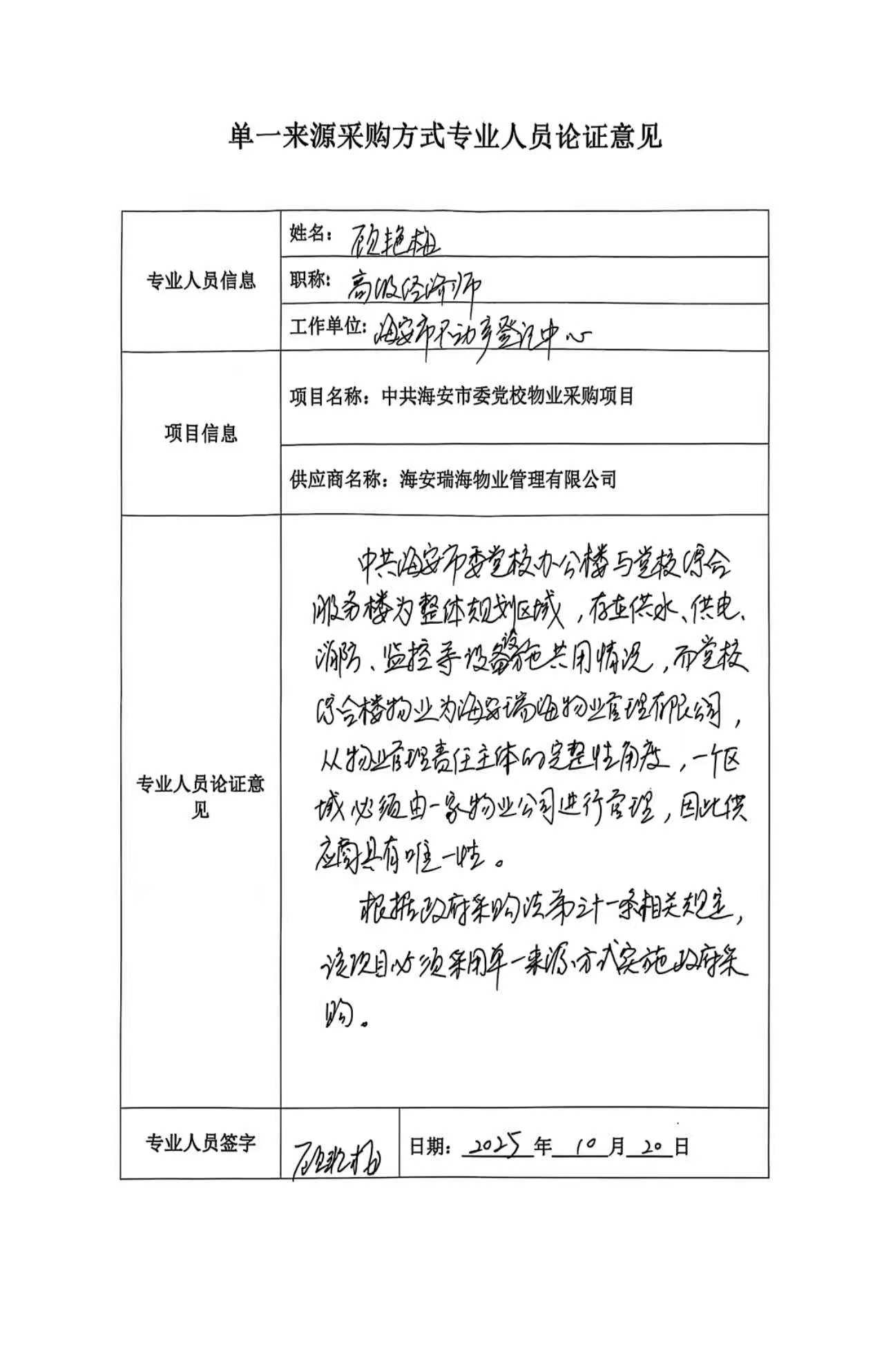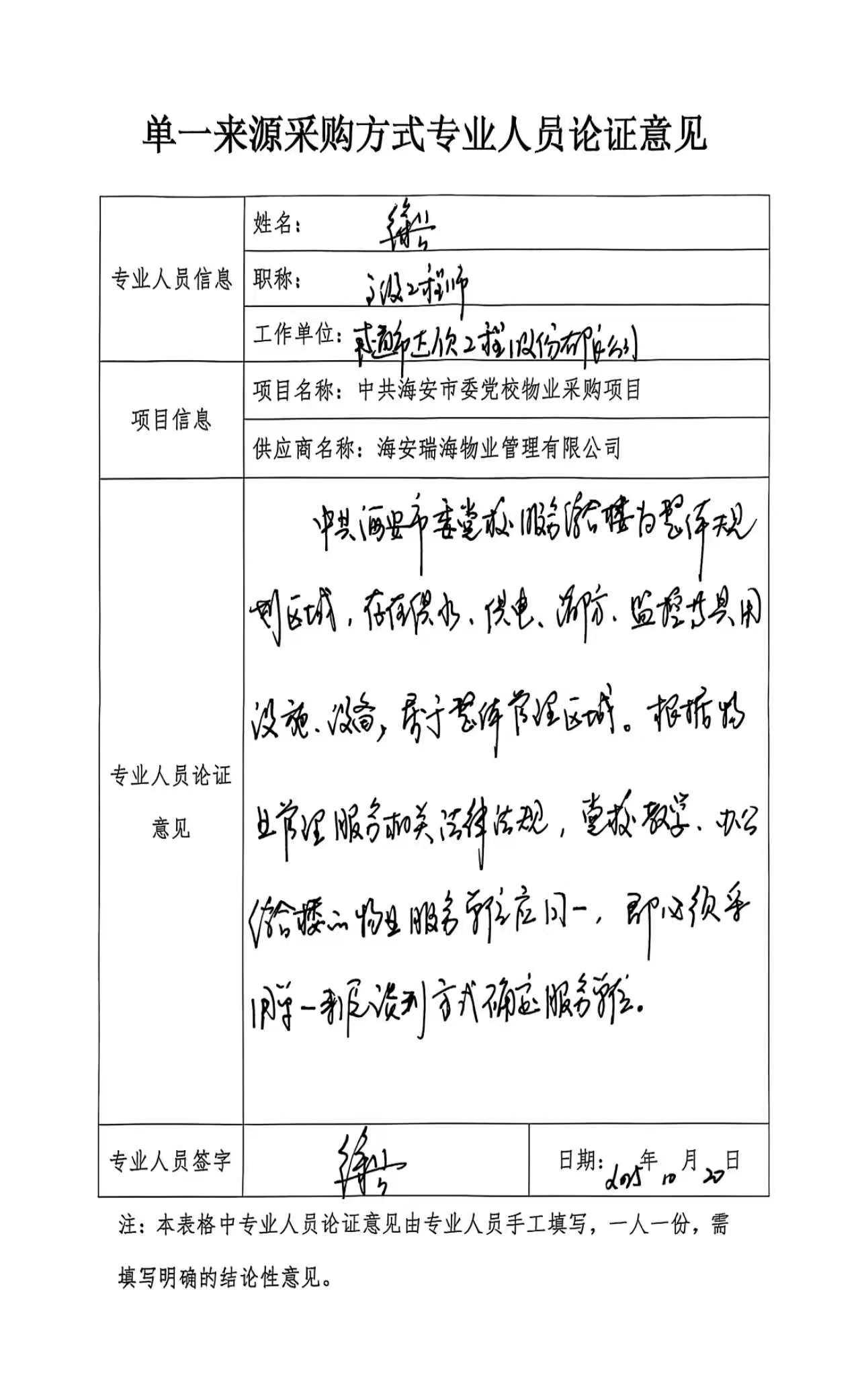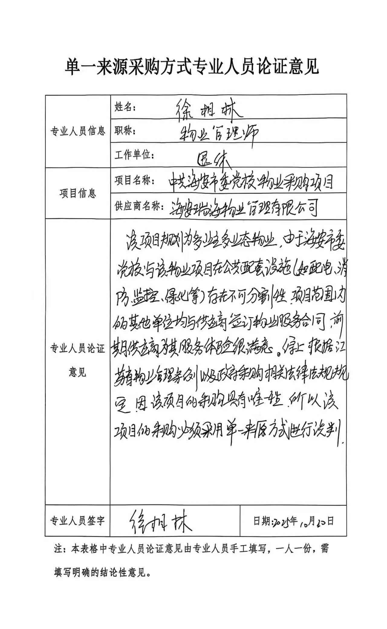 采用单一来源采购方式的原因及相关说明******消防、监控等为共用服务,日常使用和维护保养不可分割。党校综合服务楼(全季酒店区域)物业服务由瑞海物业提供。根据《物业管理条例》第三十三条:一个物业管理区域由一个物业服务企业实施物业管理,并且评审小组专家一致认为该项目符合供应商唯一性要求,必须采用单一来源方式实施政府采购。